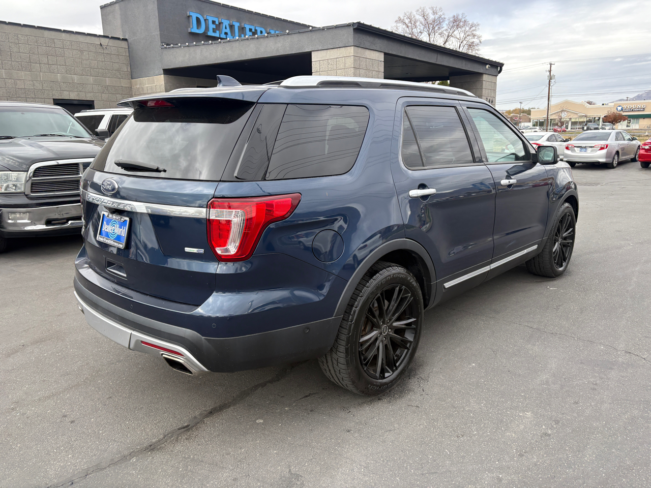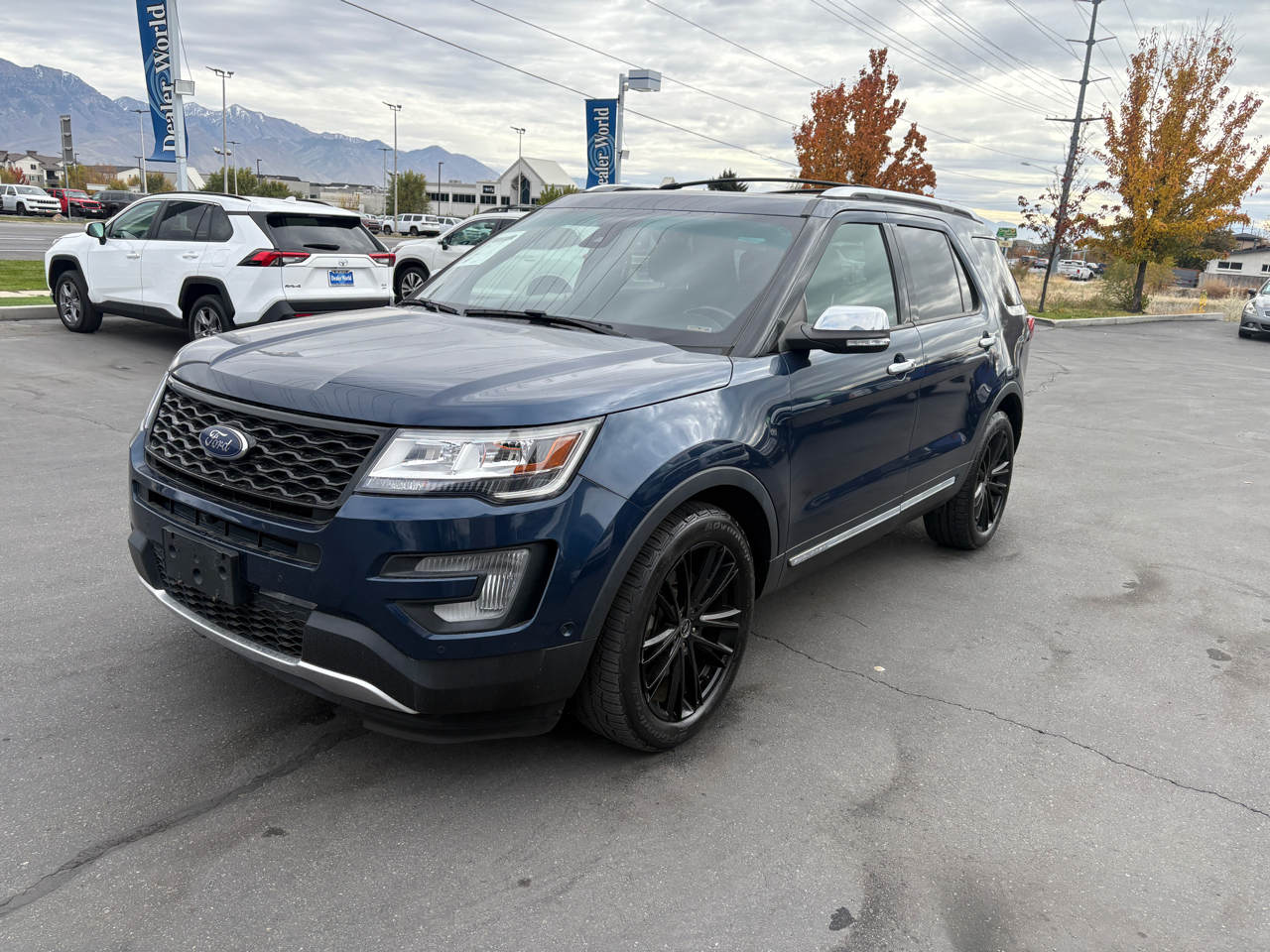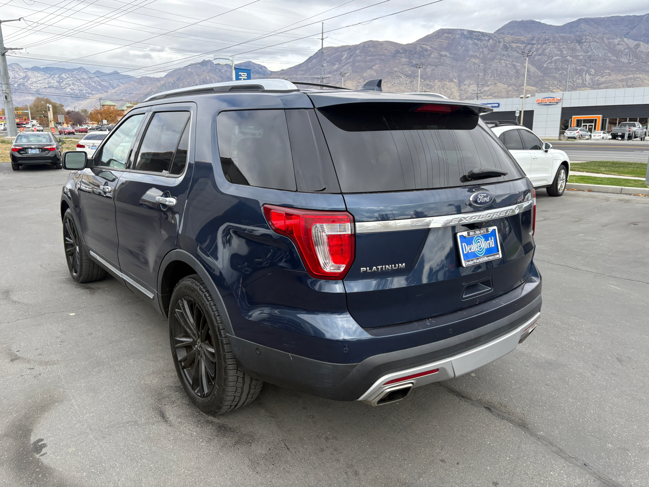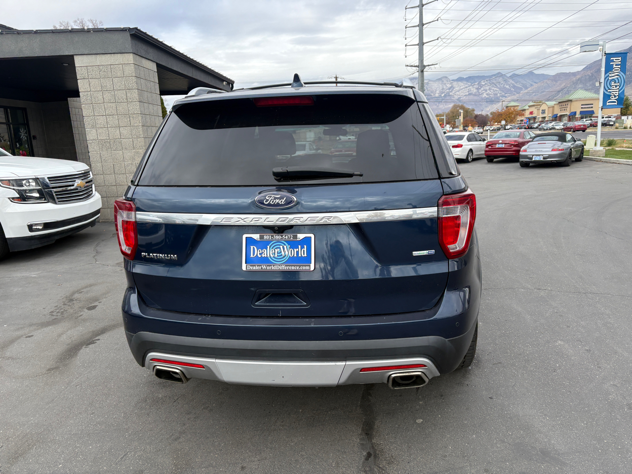 This 2017 Ford Explorer Platinum AWD has a clean Carfax with no accidents or damage. It has a 6 cylinder 3.5 liter engine, blue exterior and black leather interior. It featurs 3rd Row Seat, adaptive cruise control, automatic parking, back up camera, blind spot monitoring, bluetooth, climate control, heated & cooled seats cross-traffic alert, sunroof, power lift gate, heated rear seats, turn signal mirrors, keyless start, lane departure warning, multi zone A/C, navigation, rain sensing wipers, wood grain interior and smart device integration. Dealer World has favorable financing options for all credit scores, we accept trades and care about our guests and their experience buying a quality car. We are family owned and operated since 2005. You will deal directly with the owners every time. Stop by today and experience the Dealer World Difference!