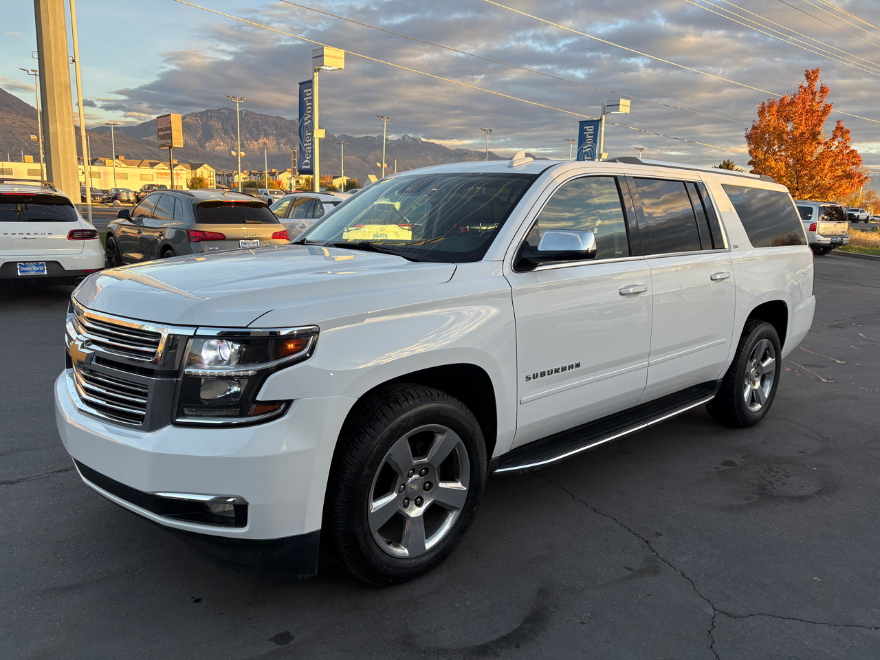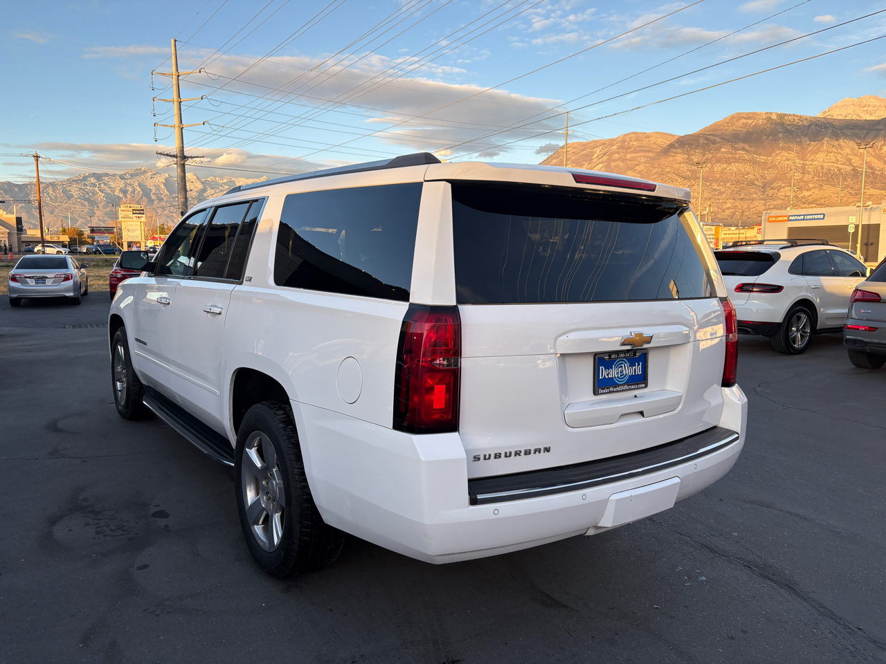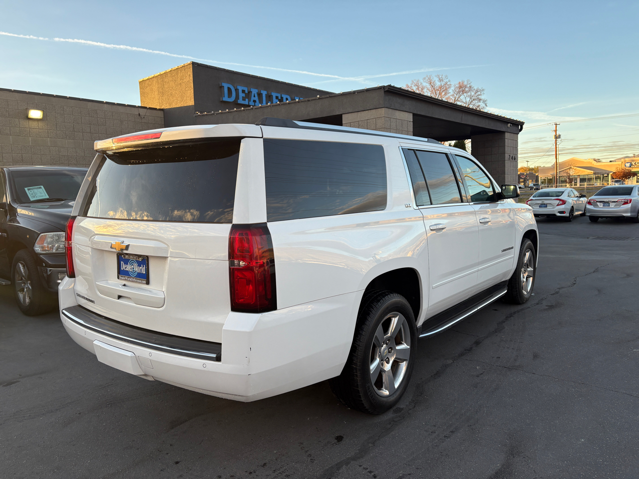 This 2016 Chevrolet Suburban LTZ AWD is super clean with a clean Carfax - no accidents or damage. It has a 8 cylinder 5.3 liter engine, white exterior and black leather interior. It features 3rd Row Seat, back up camera, blind spot monitor, bluetooth, HID headlights, power - heated - ventilated - memory front seats, heated steering wheel, multi zone a/c, navigation, rain sensing wipers, rear parking aid, croos traffic alreat, fog lamps, sunroof, integarated turn signal mirrors, keyless start, lane departure warning, power lift gate, ross-Traffic Alert, smart device integration, WiFi hotspot and keyless entry. Dealer World has favorable financing options for all credit scores, we accept trades and care about our guests and their experience buying a quality car. We are family owned and operated since 2005. You will deal directly with the owners every time. Stop by today and experience the Dealer World Difference!
