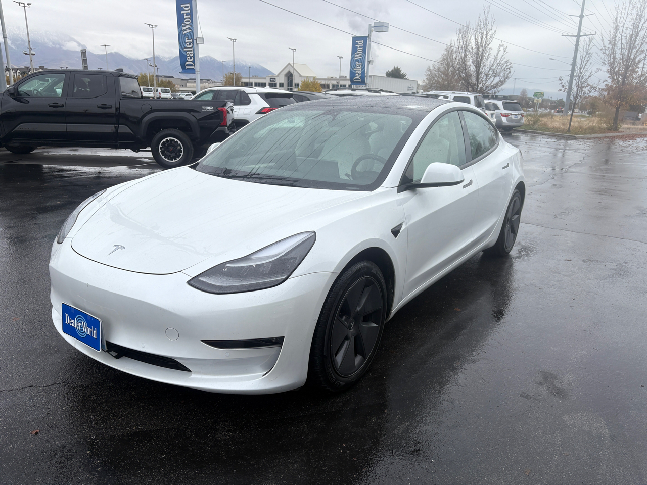 This 2022 Tesla Model 3 Long Range is a super clean, one owner with a clean Carfax - no accidents or damage. It has a white exterior and white leather interior. It features deep tinted glass, rear wiper and defrost, lip spoiler, perimeter/approach lights, 20" calligraphy wheels, memory -heated & ventilated seats, blind spot collison advoidance, lane keeping assist, proximity key and dual zone climate control. Dealer World has favorable financing options for all credit scores, we accept trades and care about our guests and their experience buying a quality car. We are family owned and operated since 2005. You will deal directly with the owners every time. Stop by today and experience the Dealer World Difference!